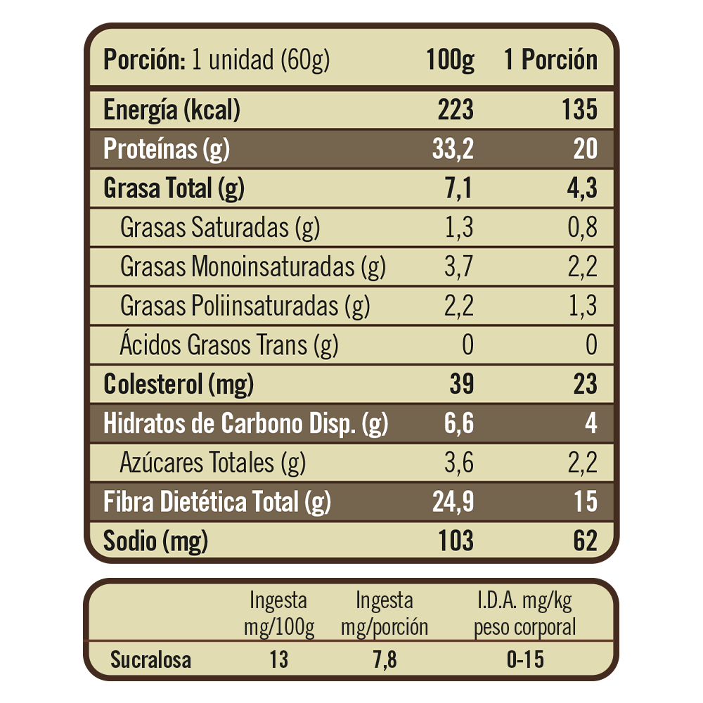 20g de proteína, 15g de fibra, solo 4g carbs. disp.
